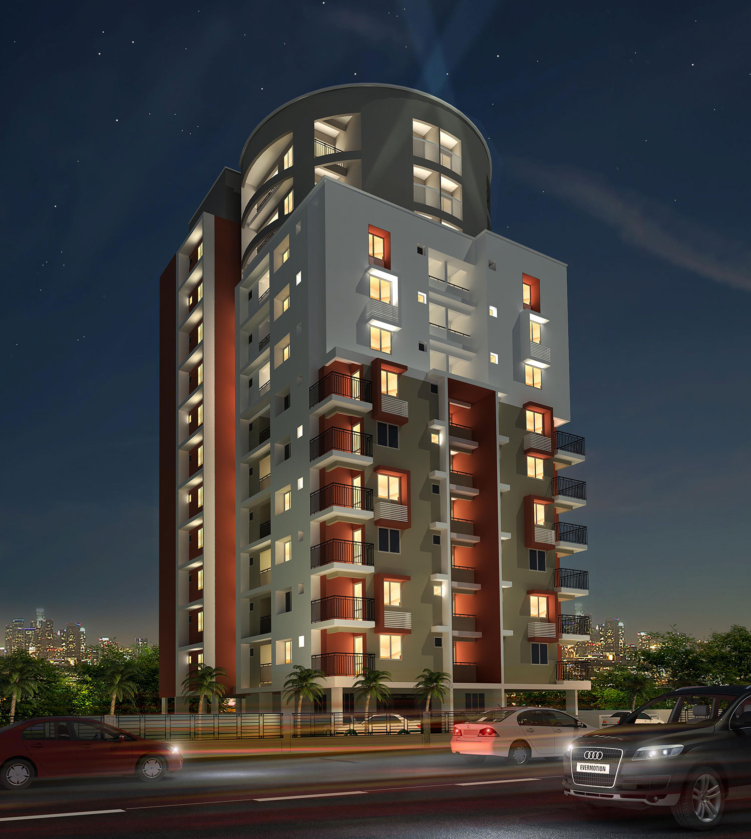 Chevron Royalwoods Apartments by Chevron Builders and Realtors [P] Ltd is an excellent choice for those seeking to set themselves in Thiruvananthapuram’s fastest highly-sought after residential areas. Airy surroundings with verdant greenery makes Royalwoods the most desirable place for a quiet suburban life. The project consists of 41 units and 12 floors.